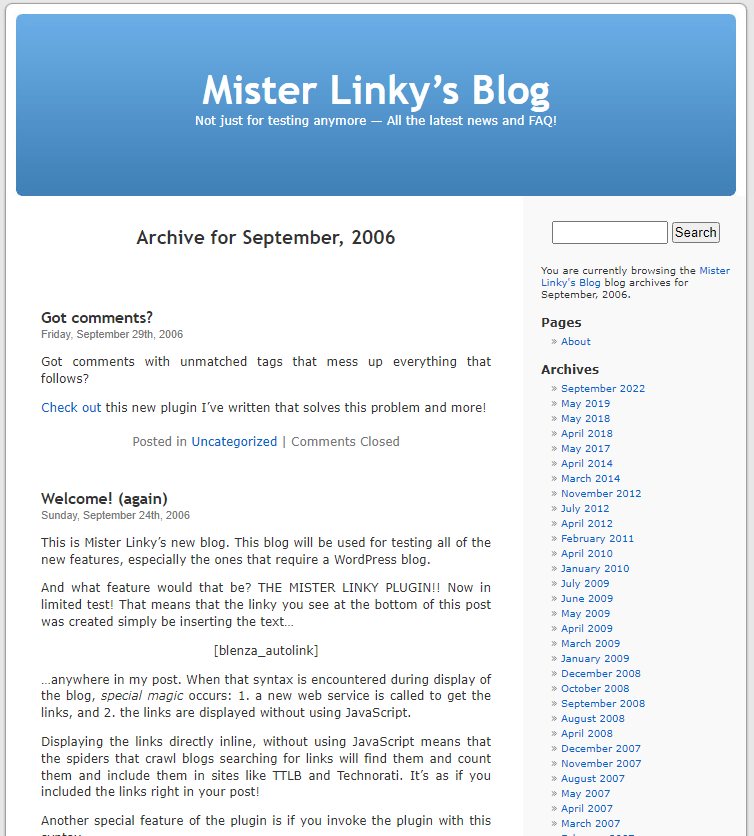 The page features a links to other posts, but doesn’t identify the blog owner. Following to the 2012 post I see the use of the “Mister Linky’s Magical Widgets.” I wonder if the original 2006 Wordless Wednesday page was a test bed for Mister Linky? I commented on the 2006 page to see if the author will reply with information on the origins of Wordless Wednesday. Can’t wait to see what I learn.