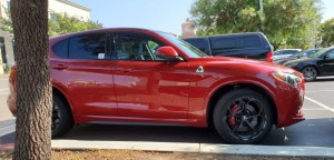 The Alfa Romeo Stelvio debuted in America in 2018. It is named after a winding pass in Bormio, Italy. Built on the same platform as the Guilia sedan, the standard version Stelvio has 280 horsepower and costs over $42000. The photo I have, above, is of the flagship Stelvio Quadrifoglio with a Ferrari-engineered 505-hp 2.9L V6. They started at $80,600. The identifying badges is a clover in a triangle. I found this one in the patient parking lot of a hospital.
